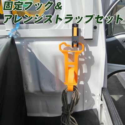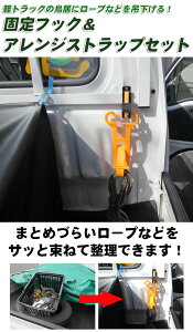 ★割引クーポン配布中★軽トラック用【鳥居用固定フック&アレンジストラップセット】 軽トラックの鳥居にロープなどを束ねて吊下げられます!持ち運びにも便利!バン・商用車にも取付け可能 セーフティロック